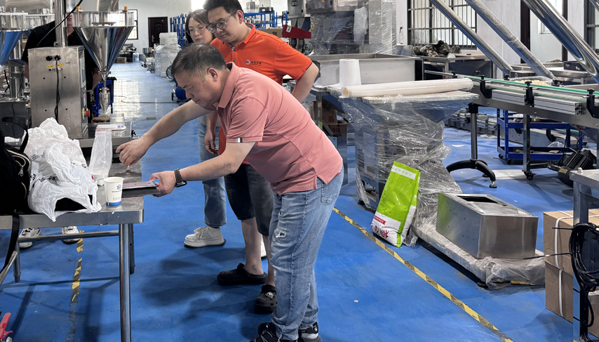 商丘客戶兩臺花生包裝機(jī)調(diào)試現(xiàn)場